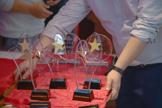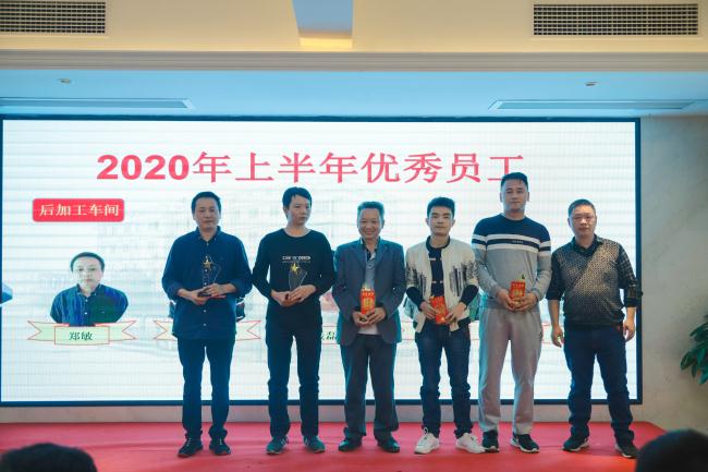 表彰大會由行政部部長張炯主持,公司總經理沈可仁代表發言,大會共設2個獎項:疫情期間特別標兵及2020年上半年優秀員工。 會議由沙畫展示公司32年發展歷史拉開序幕,獲獎員工依次上臺領獎,沉甸甸的獎杯代表著公司對他們工作的認同與期望。希望全體員工能夠向這些優秀員工學習,共同開創公司的美好未來!